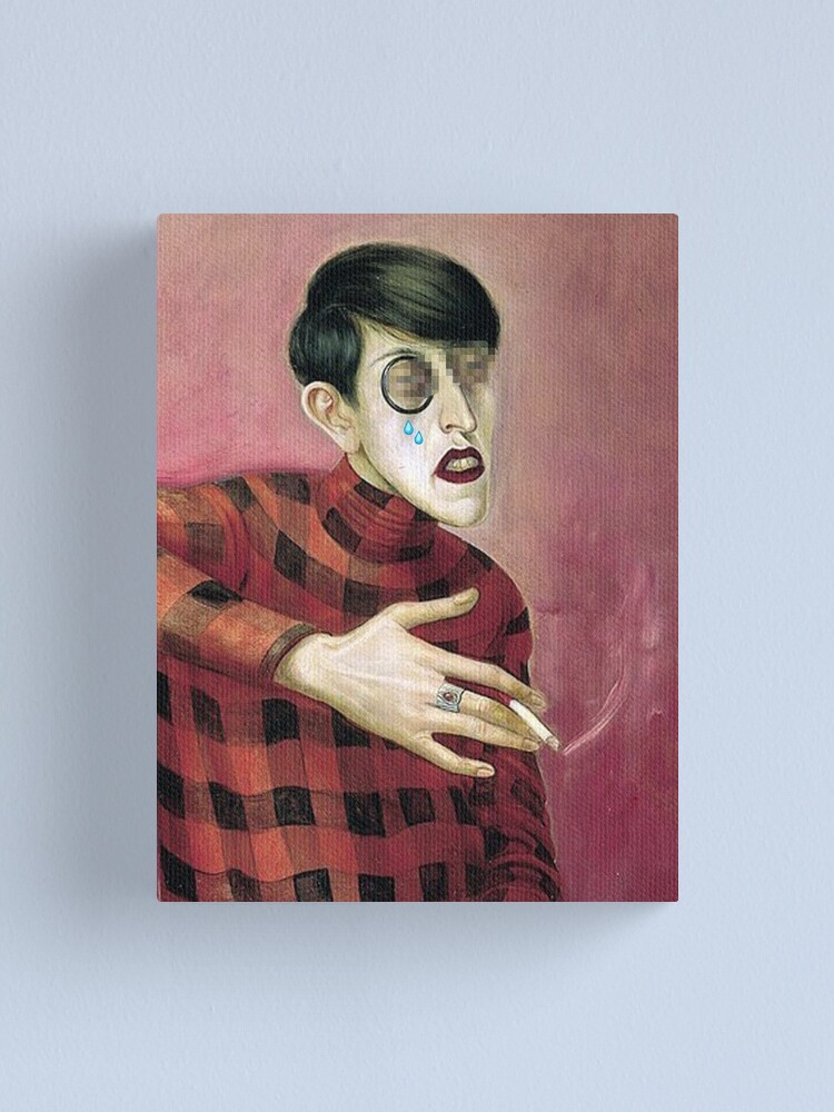 El trabajo muestra la figura casi de cuerpo entero y aspecto andrógino de la periodista Sylvia von Harden, sentada sola en una mesa en la mitad izquierda de la imagen, contra un fondo en inquietantes tonos rojizos sin ninguna decoración o abertura, evocando una esquina en un café.